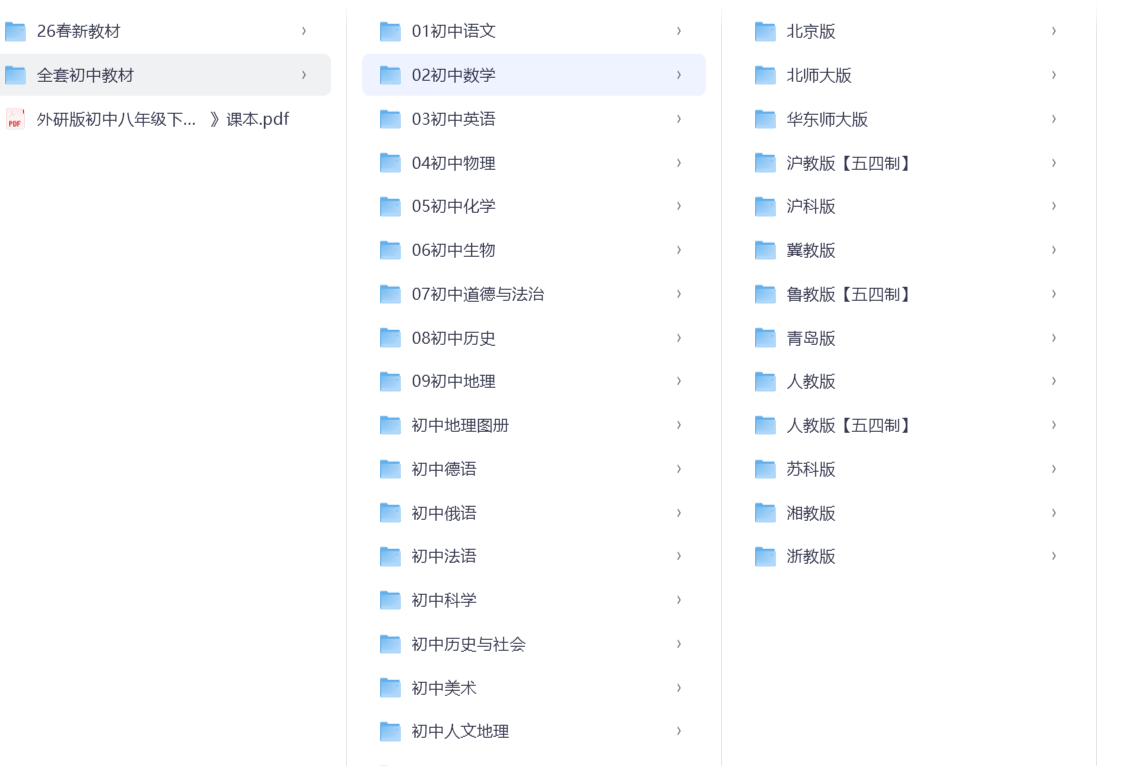 全套初中电子课本 栏目:初中资料 作者:柠檬酸酸 时间:2026-03-30 12:33:31 这是全套初中的电子课本,有最新版的,和书店卖的是一样的各个科目都有,可以给孩子做预习复习用下载地址:https://pan.quark.cn/s/3f71ae2aa02e